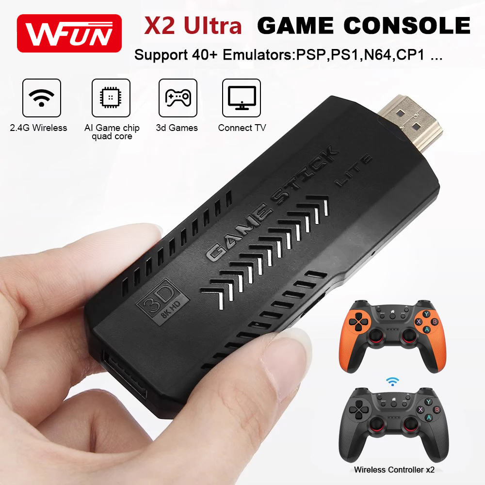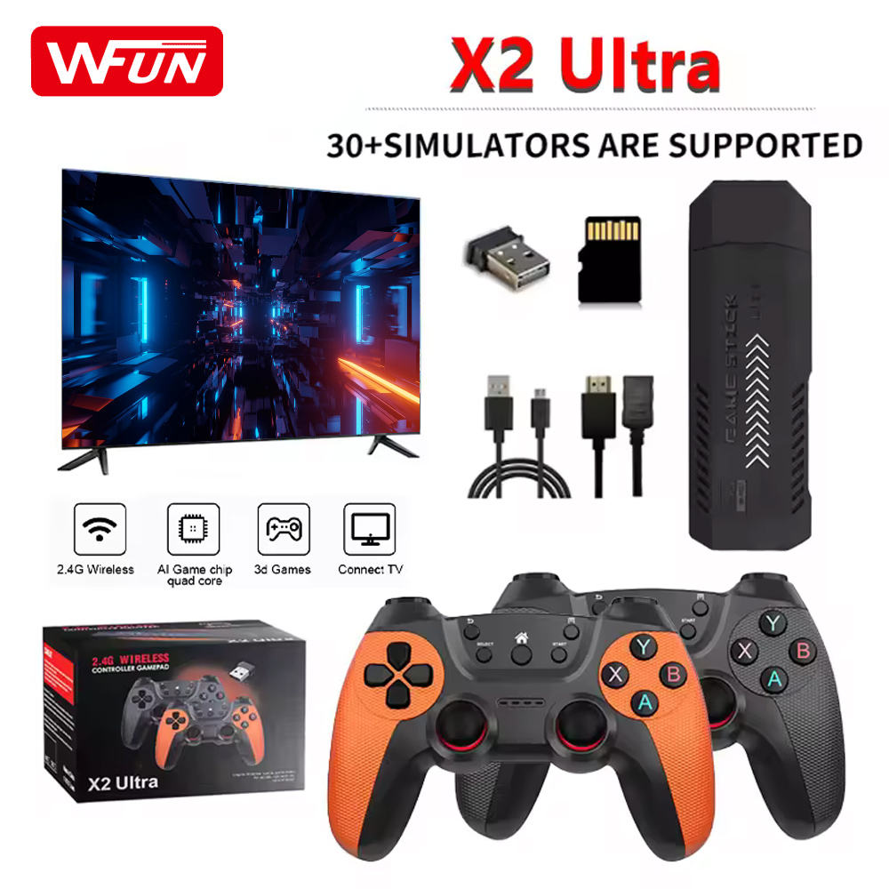 The X2 Console HD 24g comes fully loaded and ready to play. Includes 2 wireless controllers, HDMI cable, and access to 40,000+ pre-installed games. Choose your storage capacity: 64GB, 128GB, or 256GB based on your gaming needs. Everything you need is in the box.